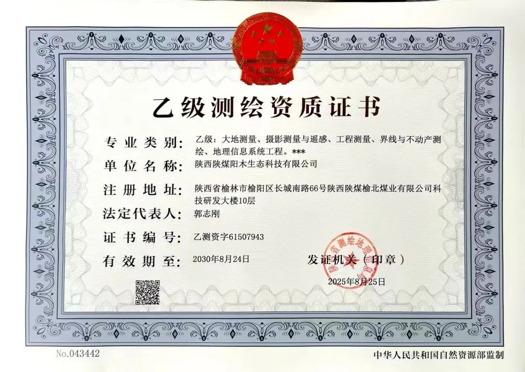 近日,陜西省測繪信息局正式批復(fù),陽木生態(tài)公司成功取得乙級測繪資質(zhì)。隨著資質(zhì)獲批,該公司可承接控制測量、地形測量、礦山測量等業(yè)務(wù),為礦山生態(tài)修復(fù)提供高精度地理信息數(shù)據(jù)支撐,助力礦山環(huán)境精細化治理。本次資質(zhì)獲批,是該公司繼獲得地質(zhì)災(zāi)害評估和治理工程勘查設(shè)計乙...