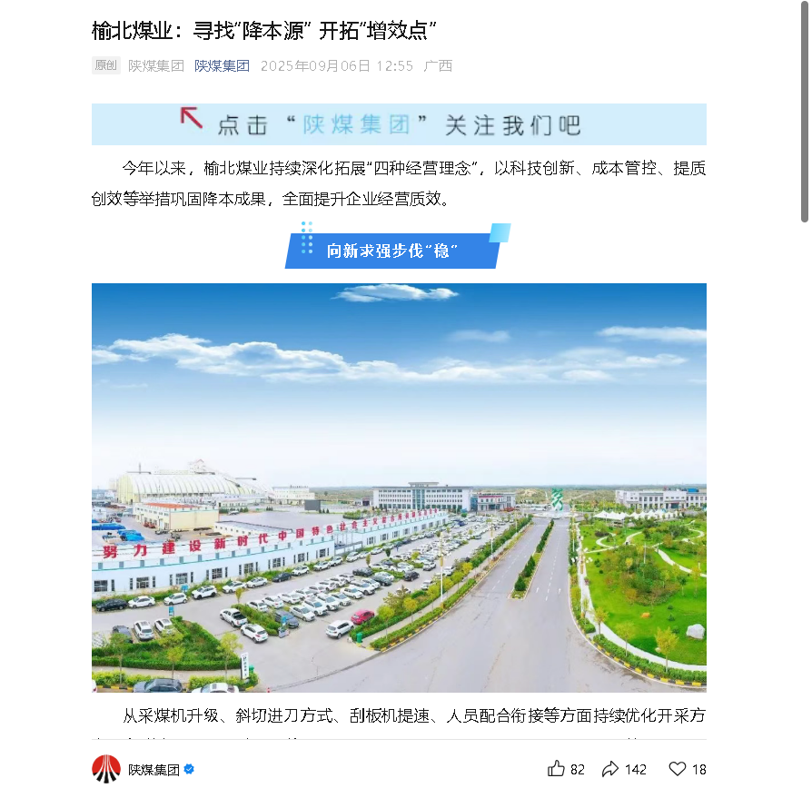 陜煤集團微信丨榆北煤業(yè): 尋找“降本源” 開拓“增效點”