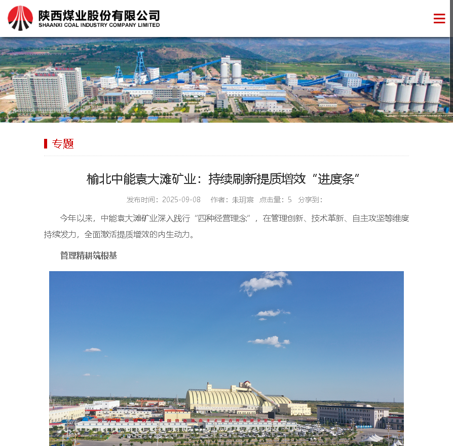 陜西煤業(yè)官網(wǎng)丨榆北中能袁大灘礦業(yè): 持續(xù)刷新提質(zhì)增效“進度條”