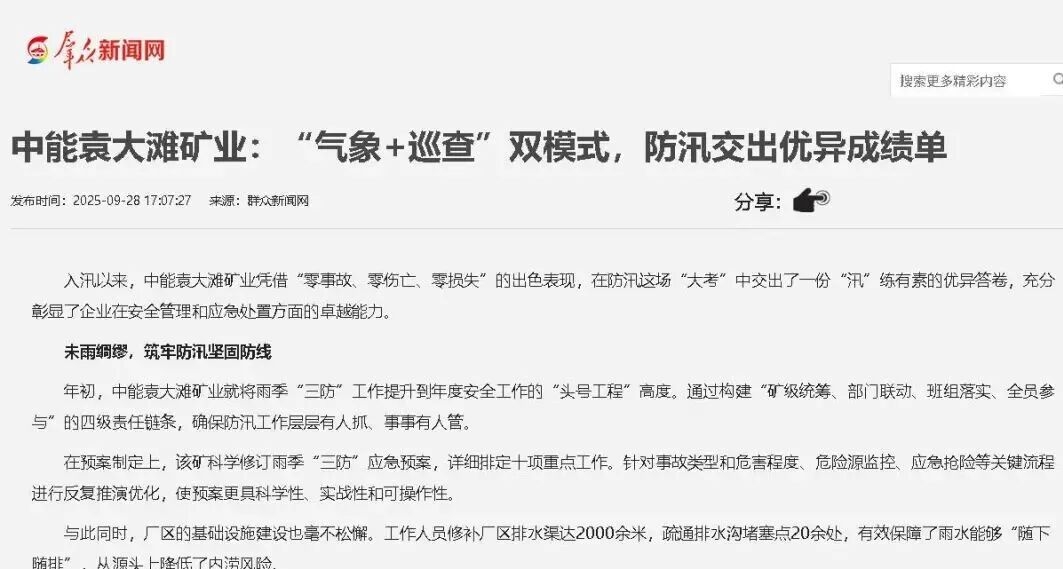 群眾新聞網(wǎng)丨榆北中能袁大灘礦業(yè): “氣象+巡查”雙模式,防汛交出優(yōu)異成績單