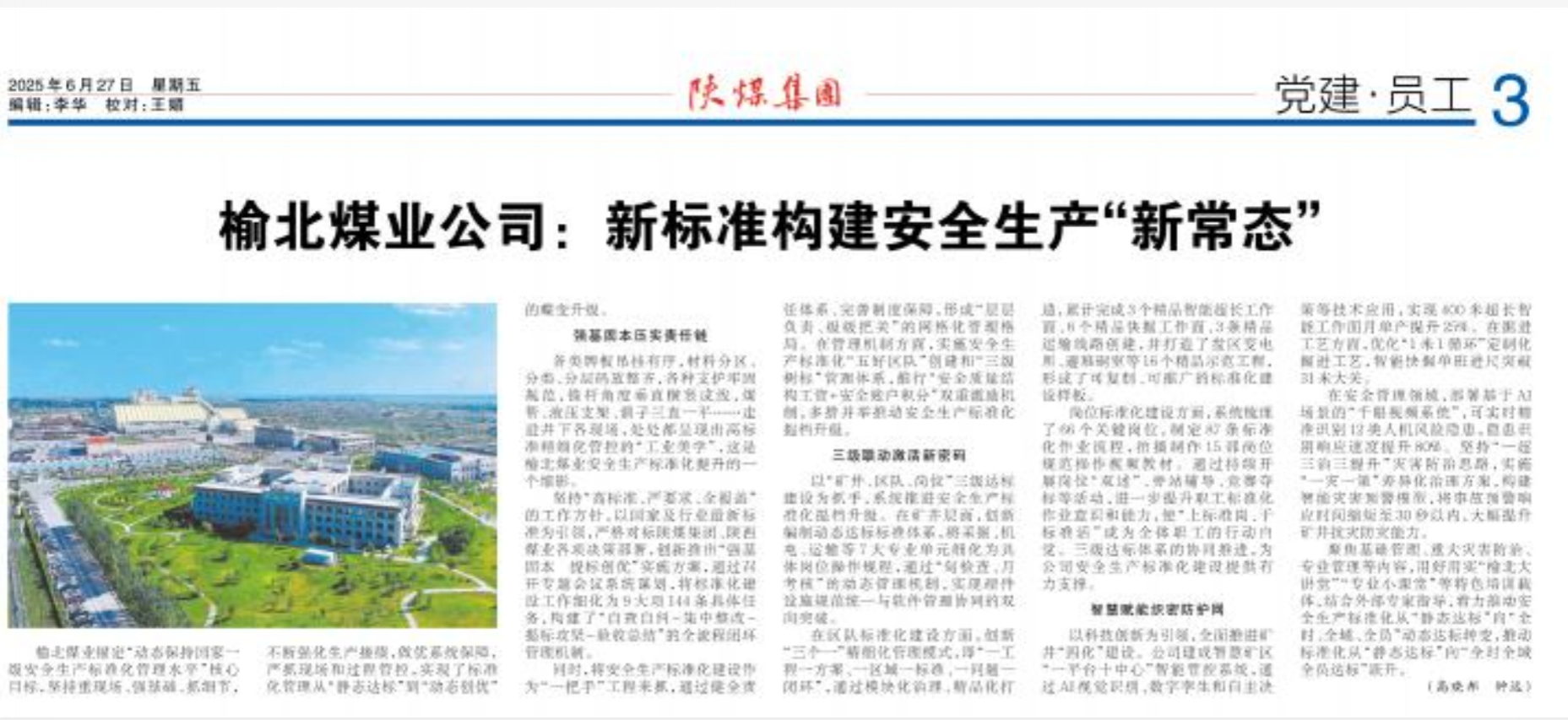 陜煤集團報丨陜煤榆北煤業(yè):新標(biāo)準(zhǔn)構(gòu)建安全生產(chǎn)“新常態(tài)”