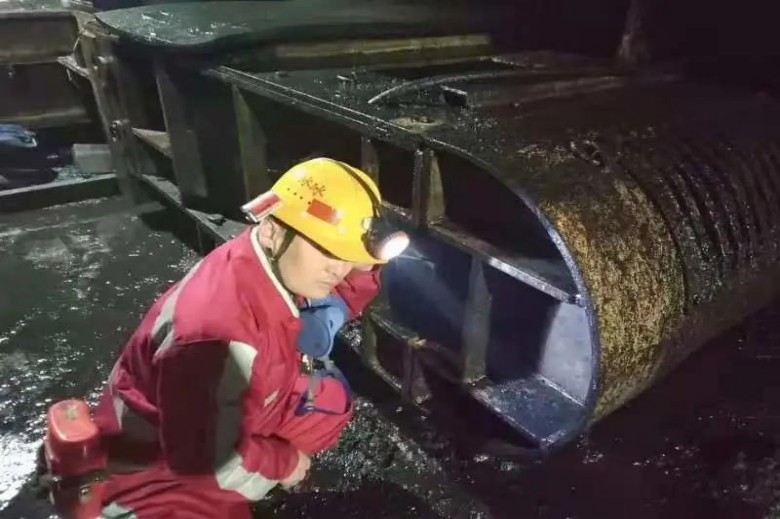 主斜井11號(hào)皮帶接頭處,因長期受到矸石沖擊造成大面積鼓包,需要及時(shí)進(jìn)行硫化。接到皮帶硫化任務(wù)后,檢修班全體員工迎難而上,只為成功想辦法、不為困難找理由,高標(biāo)準(zhǔn)、高質(zhì)量獨(dú)立完成了主斜11號(hào)皮帶接頭處硫化工作?!敖衲昴瓿跷揖筒换厝チ耍让ν暝倩厝??!边@句話已經(jīng)成為該區(qū)員工們的2021“祝福語”。為了該公司安全生產(chǎn),他們?cè)诰逻^了一個(gè)特殊的除夕夜。斷帶、打磨帶頭、清洗鋼絲繩、鋪膠是他們送給曹家灘公司的“新年禮物”,連續(xù)40個(gè)小時(shí)是他們別樣的新年時(shí)光。正是這樣“不達(dá)目的不罷休”的工作態(tài)度,他們書寫了曹家灘2021開局新氣象。